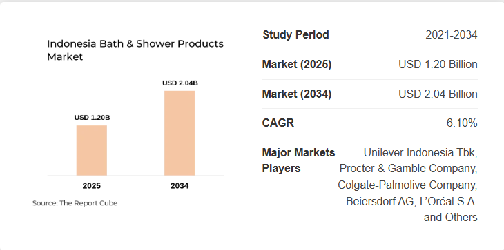 According to the Indonesia Bath & Shower Products Market Research Report (2026-2034) by Report Cube, the market was valued at approximately USD 1.20 Billion in 2025. Based on current industry structure and observed demand patterns, the market is projected to reach USD 2.04 Billion by 2034, expanding at a 6.10% CAGR during the forecast timeline.