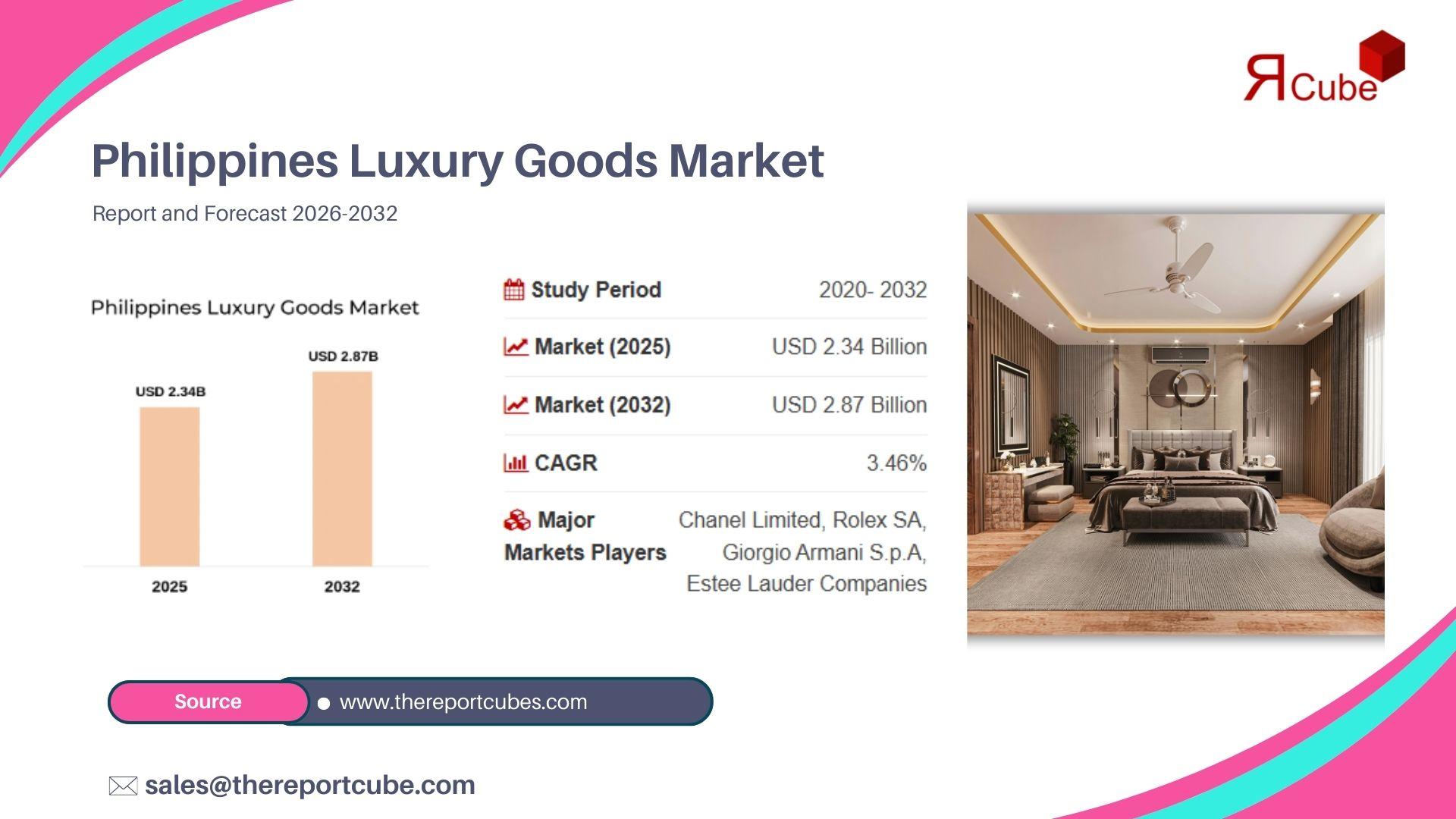 - Philippines Luxury Goods Market Forecast: Revenue to Reach USD 2.87 Billion by 2032 at 3.46% CAGR