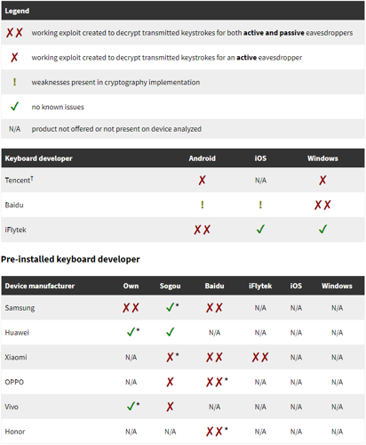 Of particular concern are the applications developed by Baidu, Tencent (QQ Pinyin), and iFlytek, which collectively serve hundreds of millions of users. These widely-distributed applications demonstrated the most significant security shortcomings.