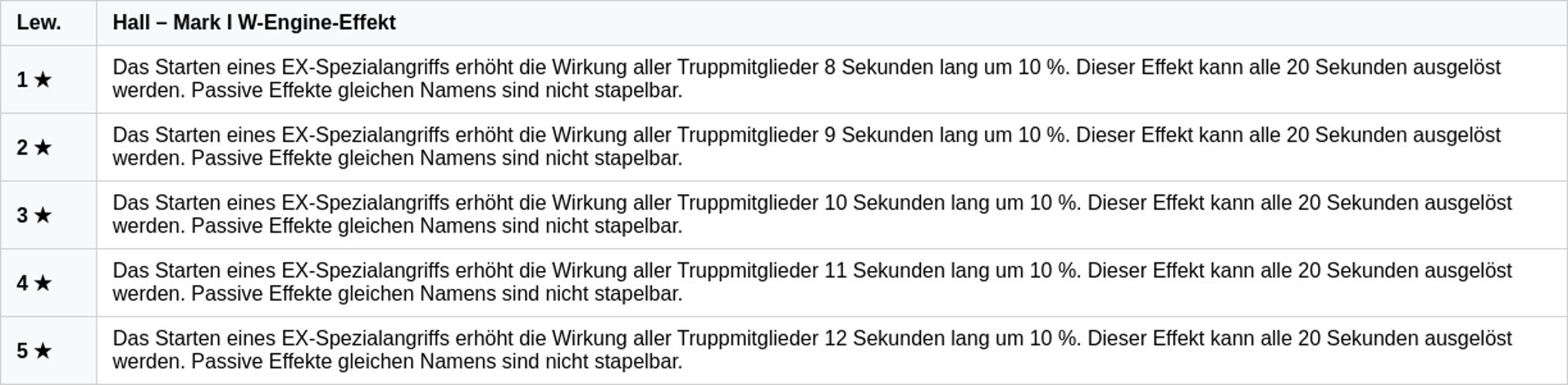 Es ist wichtig zu beachten, dass passive Effekte mit identischem Namen nicht kumulativ wirken.